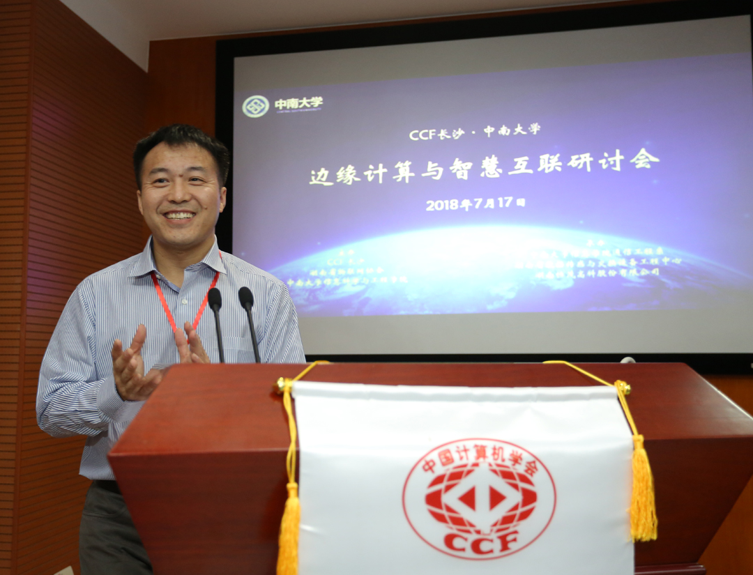 2018年7月17日,由湖南恒茂高科股有限公司及湖南省数据传感与交换设备工程中心、CCF长沙、中南大学信息科学与工程学院联合举办、通信工程系承办的“边缘计算与智慧互联技术研讨会”在中南大学科教南楼隆重举行。参加此次高端论坛的有来自中南大学、国防科技大学、湖南大学、哈尔滨工程大学、湖南师范大学、长沙理工大学、广州大学、湘潭大学、湖南商学院、中南林业科技大学、中南民族大学、湖南工业大学、湖南科技大学、湖南财政经济学院、广东工业大学、湖南涉外经济学院等十几所高等院校的两百多名师生。此次研讨会得到了中南大学信息学院以及CCF长沙的高度重视。中南大学信息科学与工程学院院长邹北骥教授、CCF长沙主席-国防科技大学卢凯教授出席了本次论坛。邹北骥教授以及卢凯教授分别致辞。会议由邓晓衡教授主持。