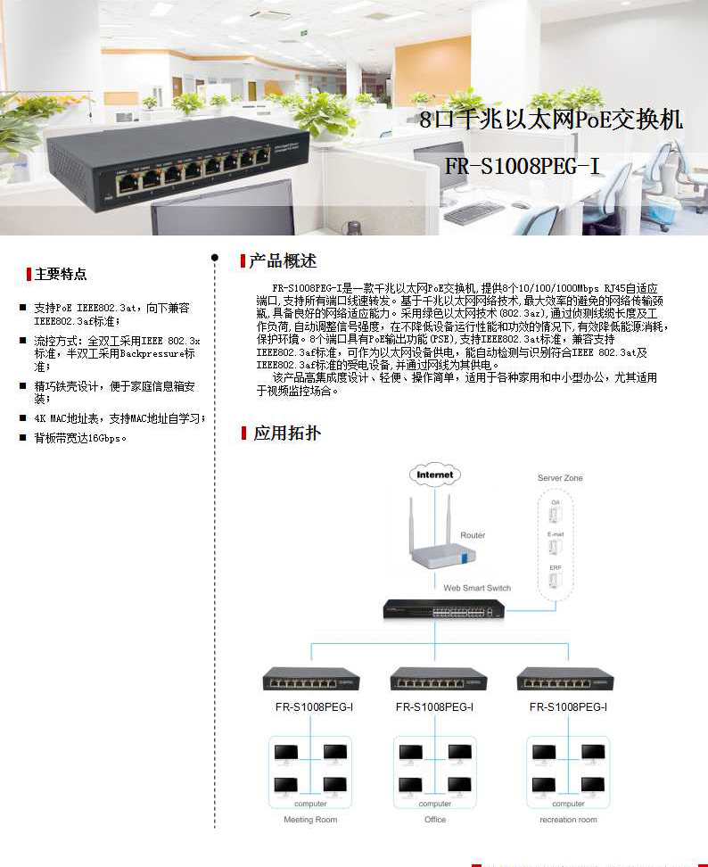 8个10/100/1000M自适应RJ45端口(Auto MDI/MDIX)