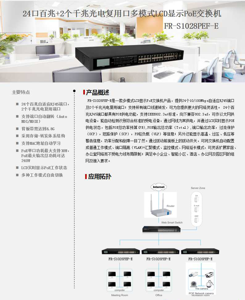 24个10/100Mbps自适应RJ45端口(Auto MDI/MDIX)