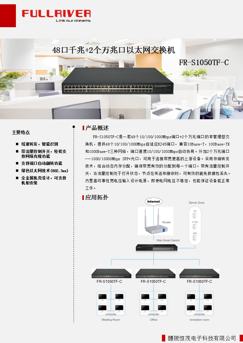 - 48个10/100/1000Mbps自适应RJ45端口,支持端口自动翻转(Auto MDI/MDIX);