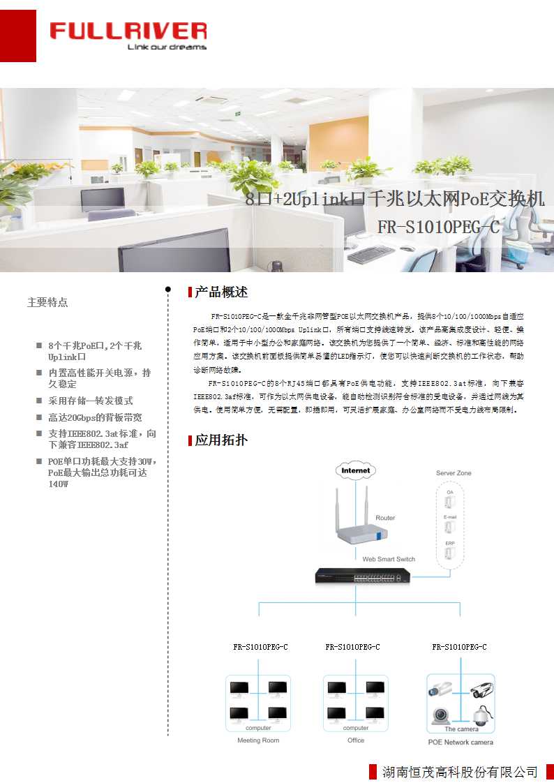 恒茂高科FULLRIVER·8口+2Uplink口千兆以太网PoE交换机