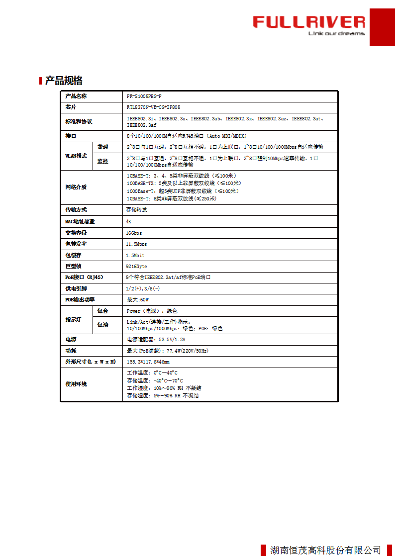 恒茂高科FULLRIVER8口千兆多模式非管理型POE以太网