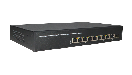 - 9个10/100/1000M自适应RJ45端口,支持自动翻转功能(Auto MDI/MDIX),1个千兆SFP光纤端口;