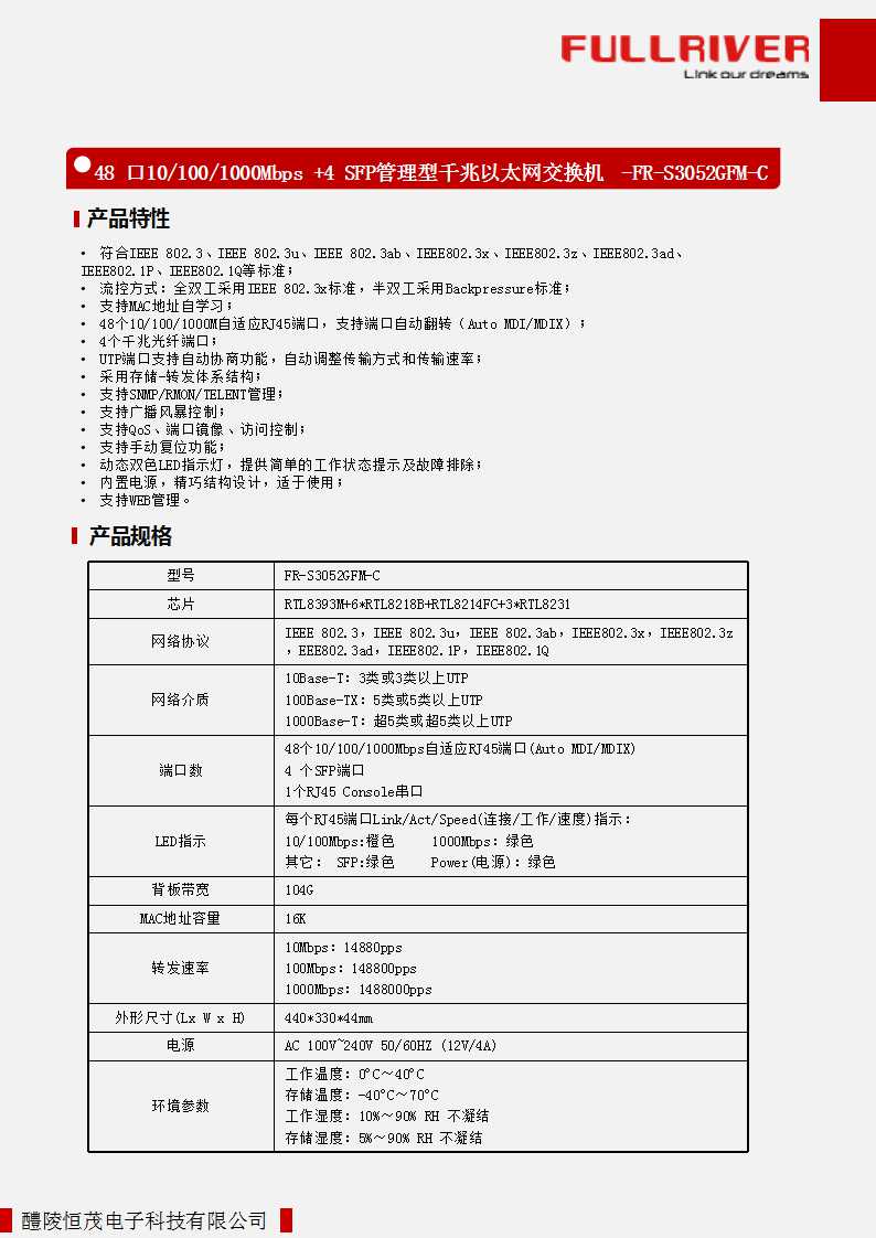 - 符合IEEE 802.3、IEEE 802.3u、IEEE 802.3ab、IEEE802.3x、IEEE802.3z、IEEE802.3ad、 IEEE802.1P、IEEE802.1Q等标准;