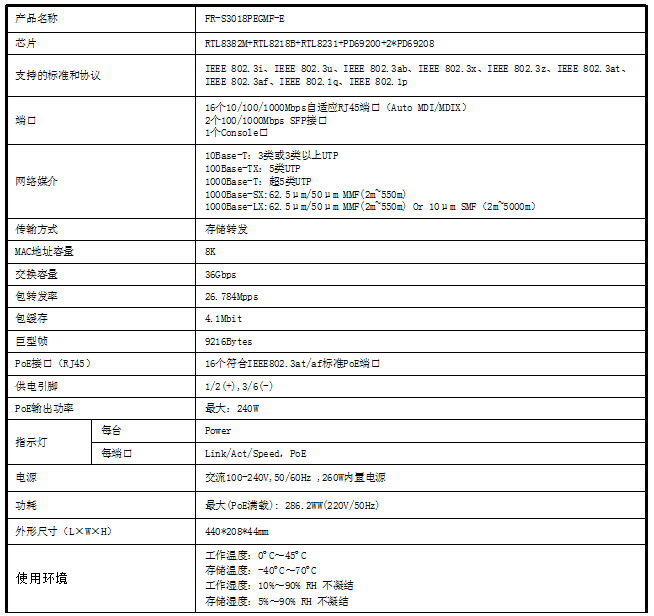 - 16个10/100/1000M自适应RJ45端口,支持自动翻转功能(Auto MDI/MDIX);