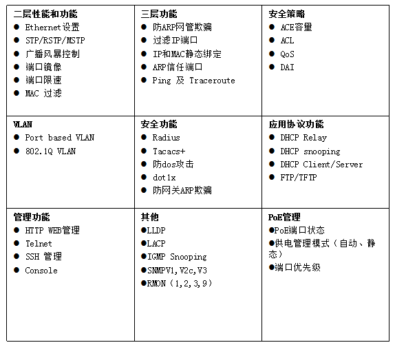 - 支持QoS(服务质量)、端口镜像、链路聚合协议;