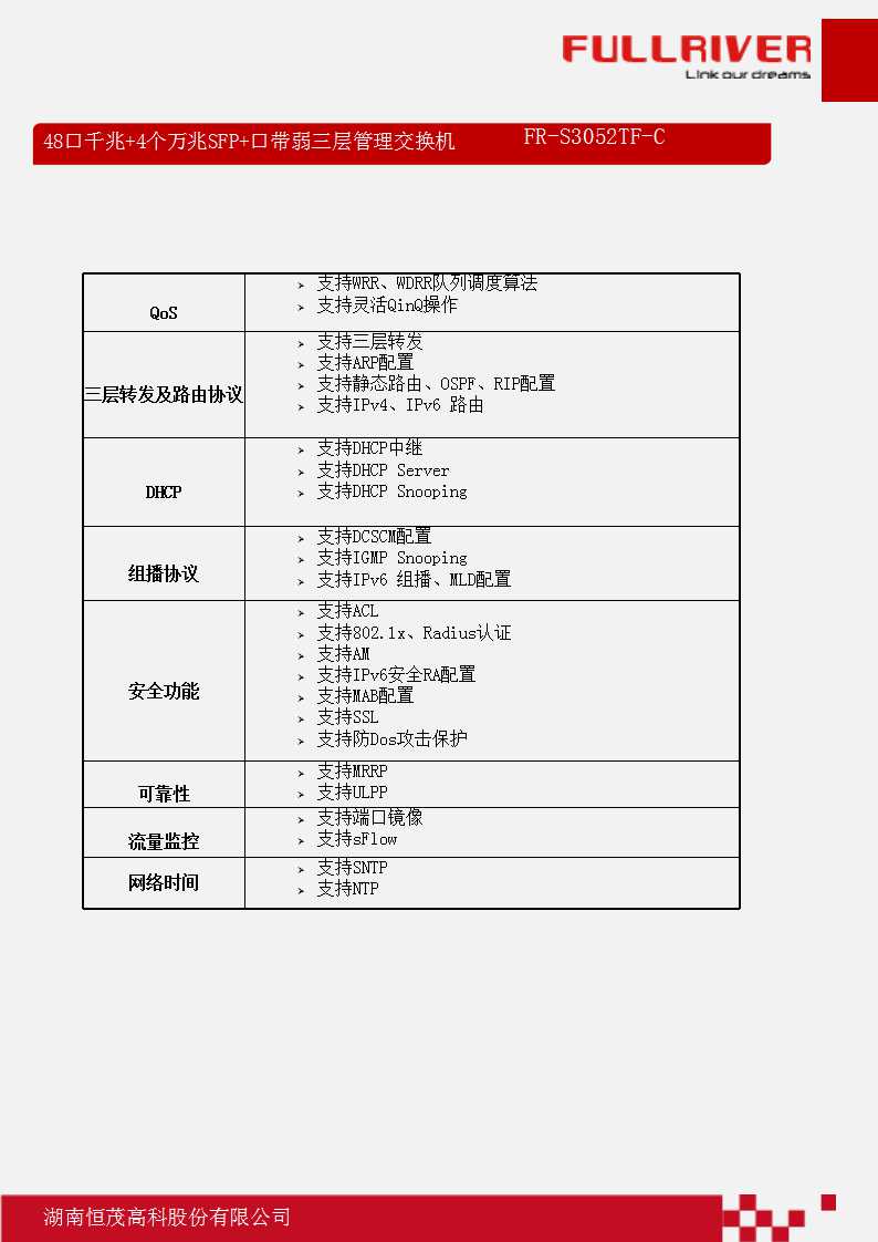• 支持 QoS、Port Mirroring、Link Aggregation 协议;