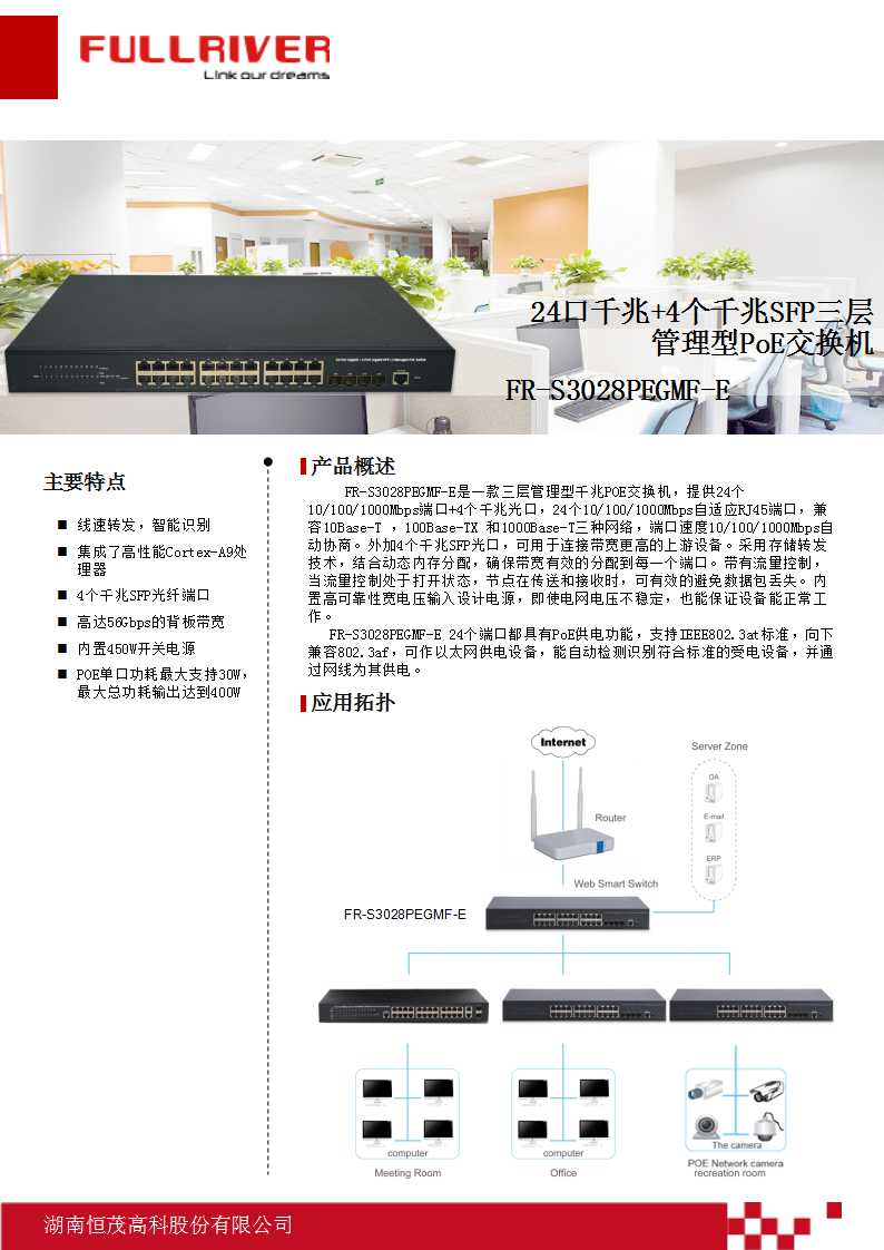 恒茂高科 FULLRIVER 24口千兆+4个千兆SFP口三层管理