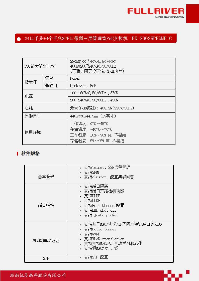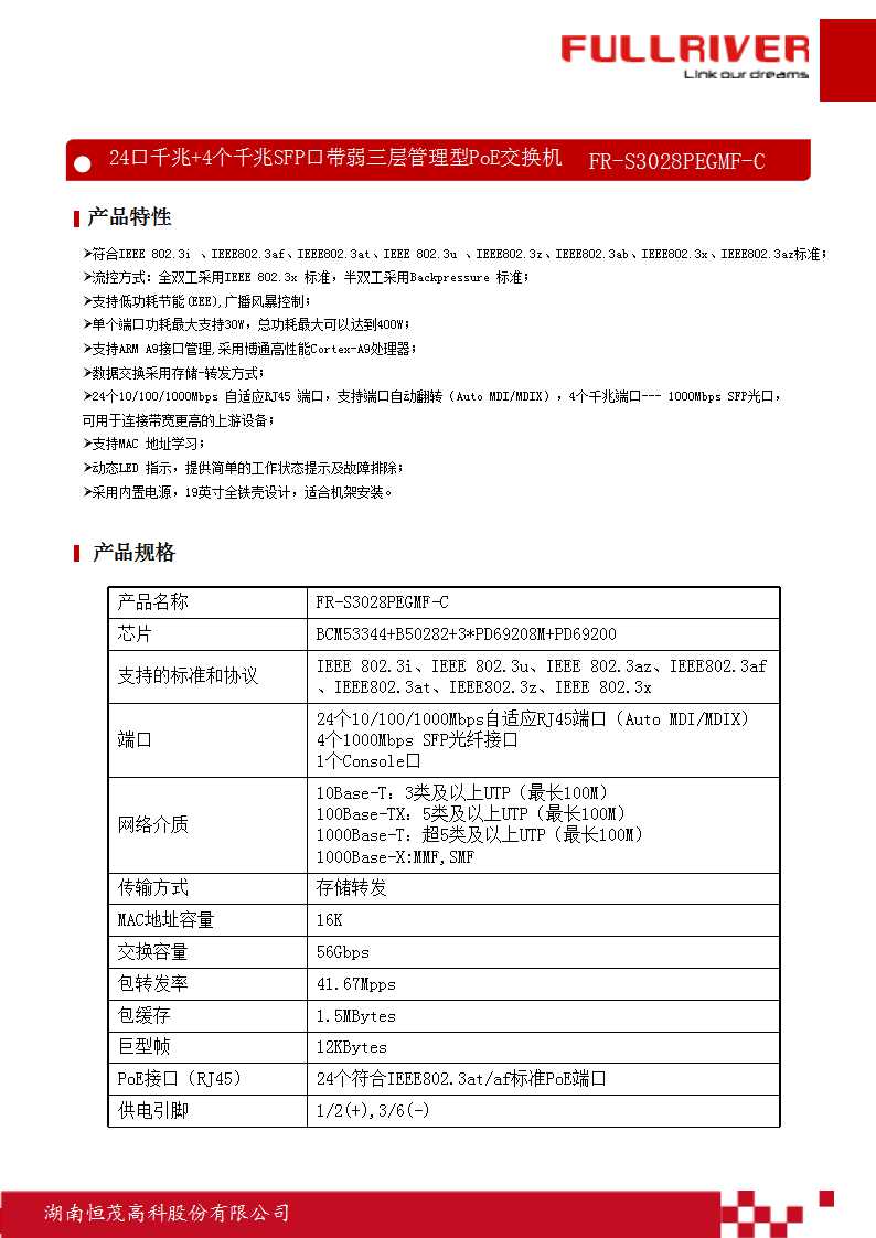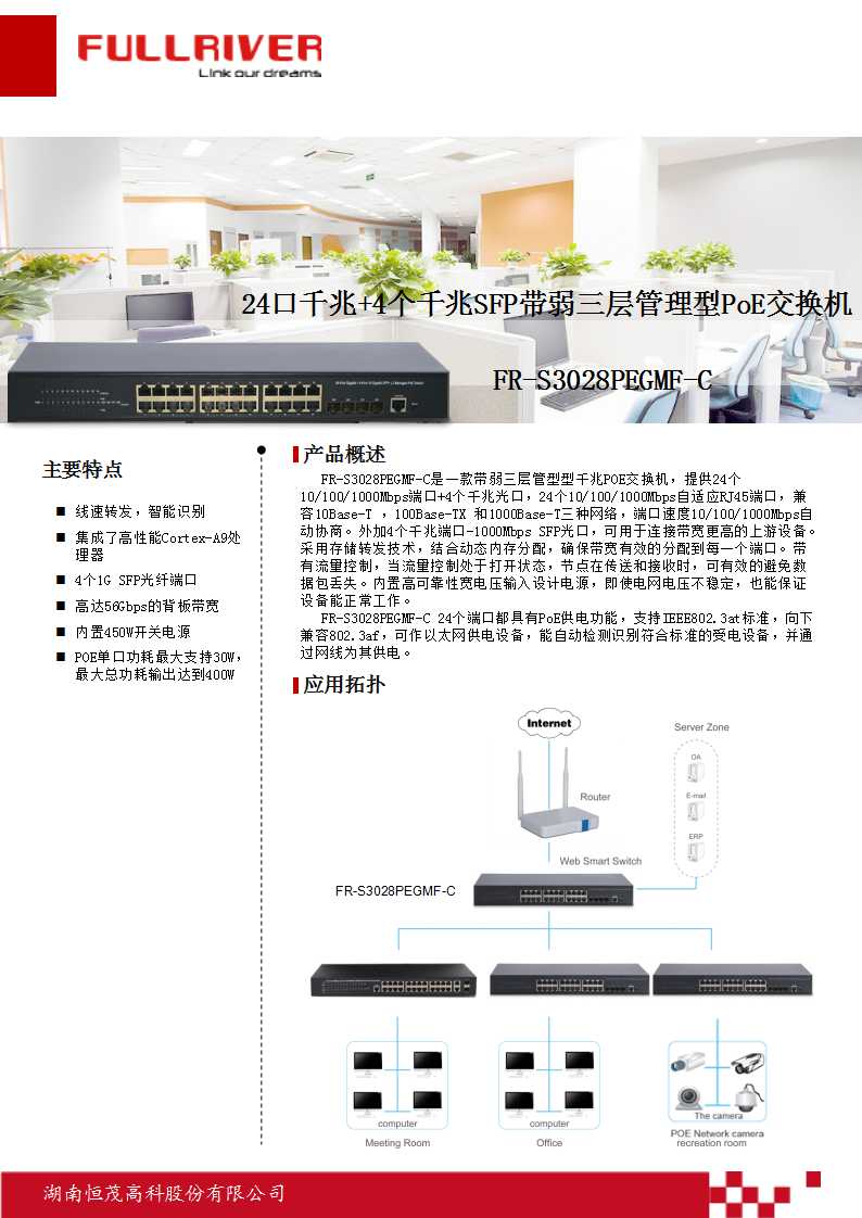 恒茂高科 FULLRIVER 24口千兆+4个千兆SFP口带弱三层
