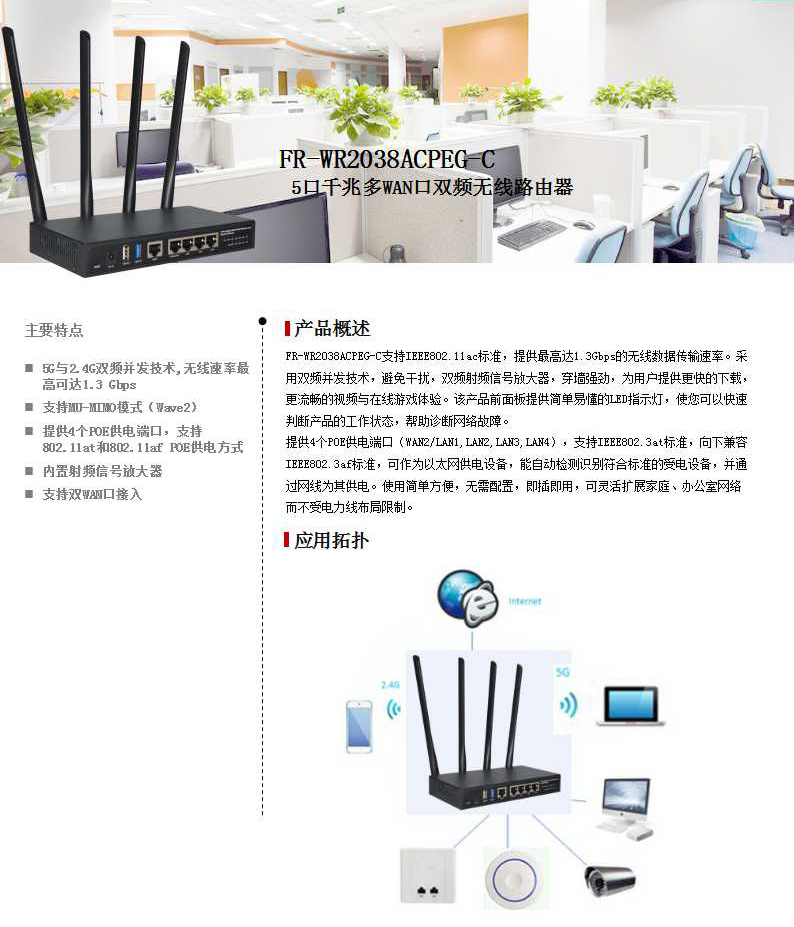 提供4个POE供电端口(WAN2/LAN1,LAN2,LAN3,LAN4),支持IEEE802.3at标准,向下兼容IEEE802.3af标准;
