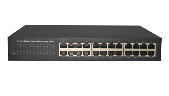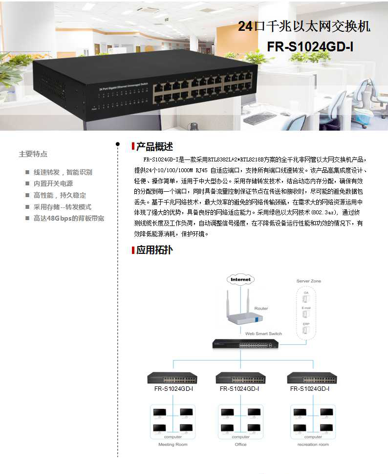24个10/100/1000Mbps自适应RJ45端口(Auto MDI/MDIX)