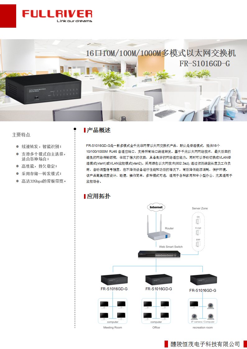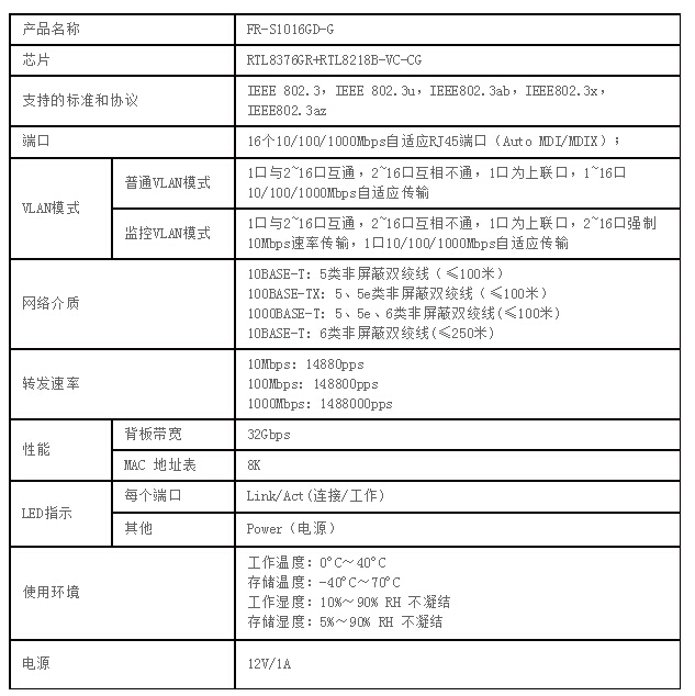 • 16个10/100/1000M自适应RJ45端口,支持端口自动翻转(Auto MDI/MDIX);