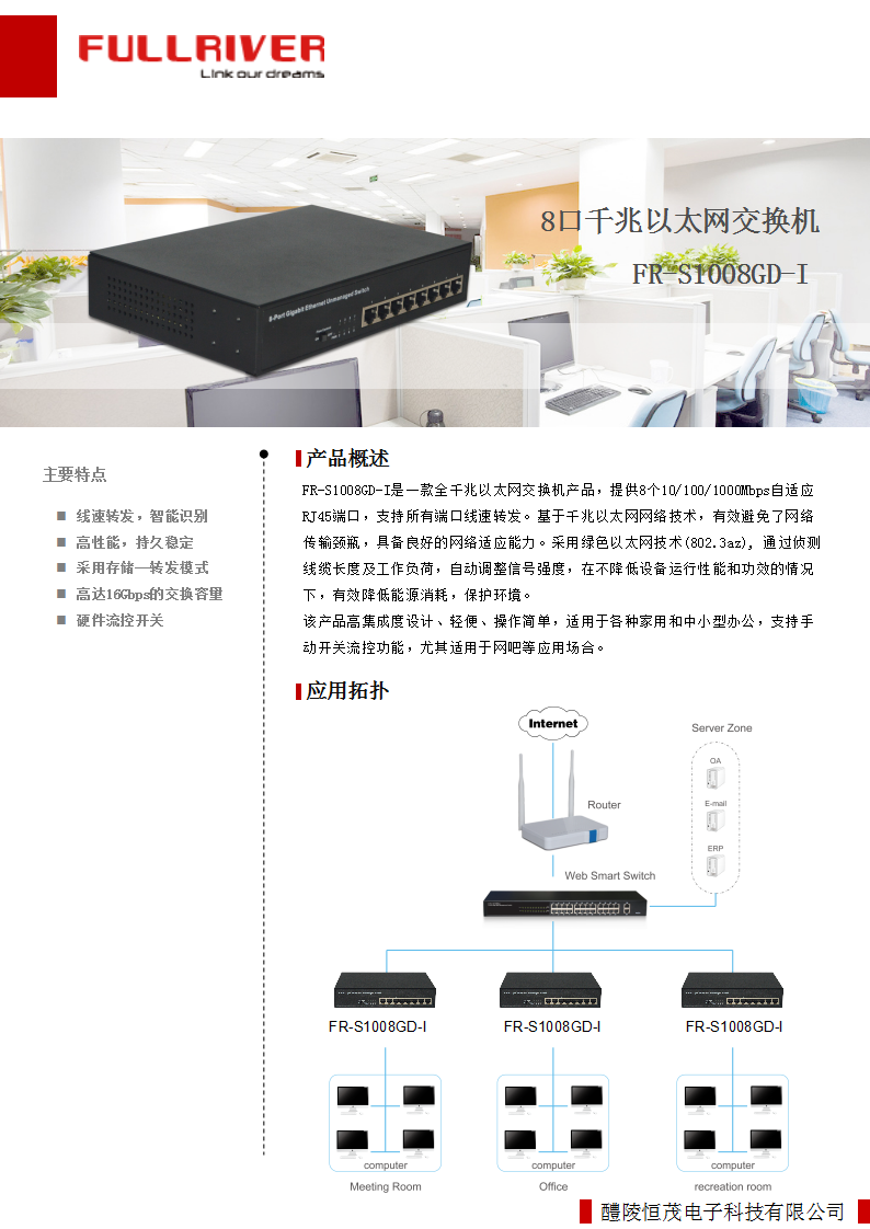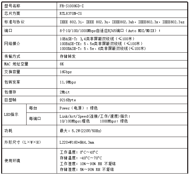 - 8个10/100/1000M自适应RJ45端口,支持端口自动翻转(Auto MDI/MDIX);