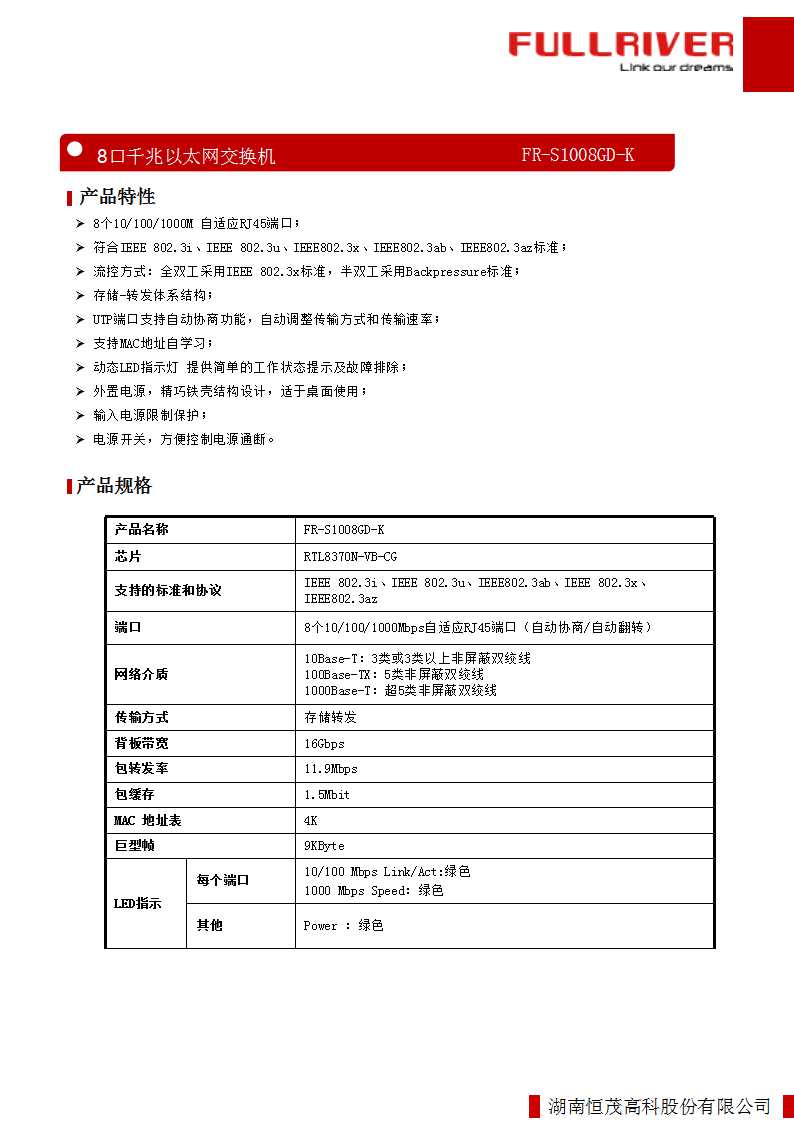 恒茂高科FULLRIVER 8口千兆非管理型以太网交换机
