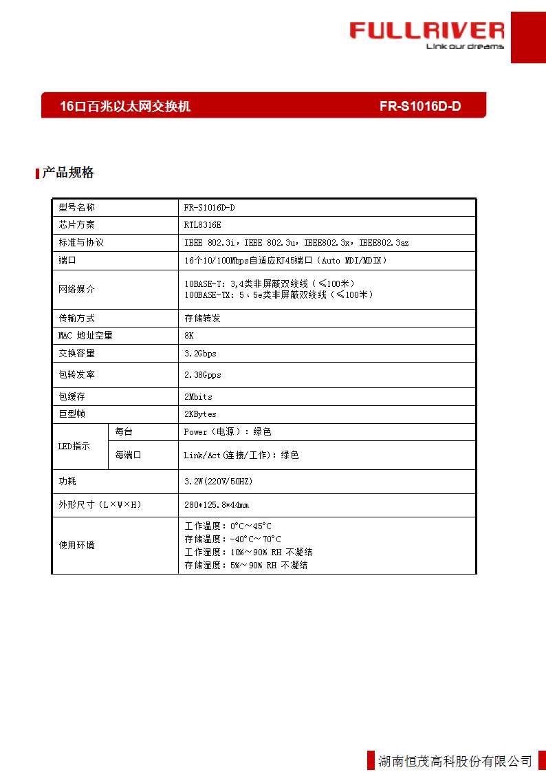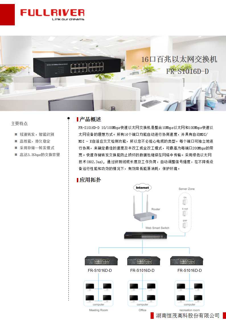 恒茂高科 FULLRIVER 16口百兆非管理型交换机