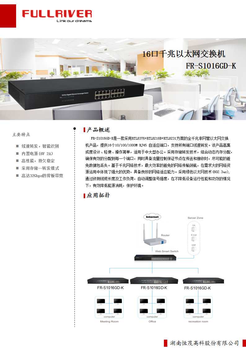 恒茂高科 FULLRIVER 16口千兆以太网交换机