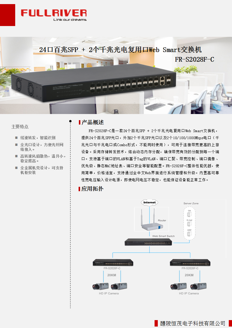 - 2个千兆SFP光纤端口以及2个10/100/1000Mbps电口,可用于连接带宽更高的上游设备;