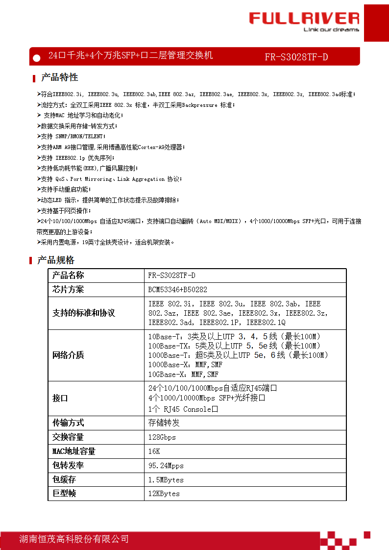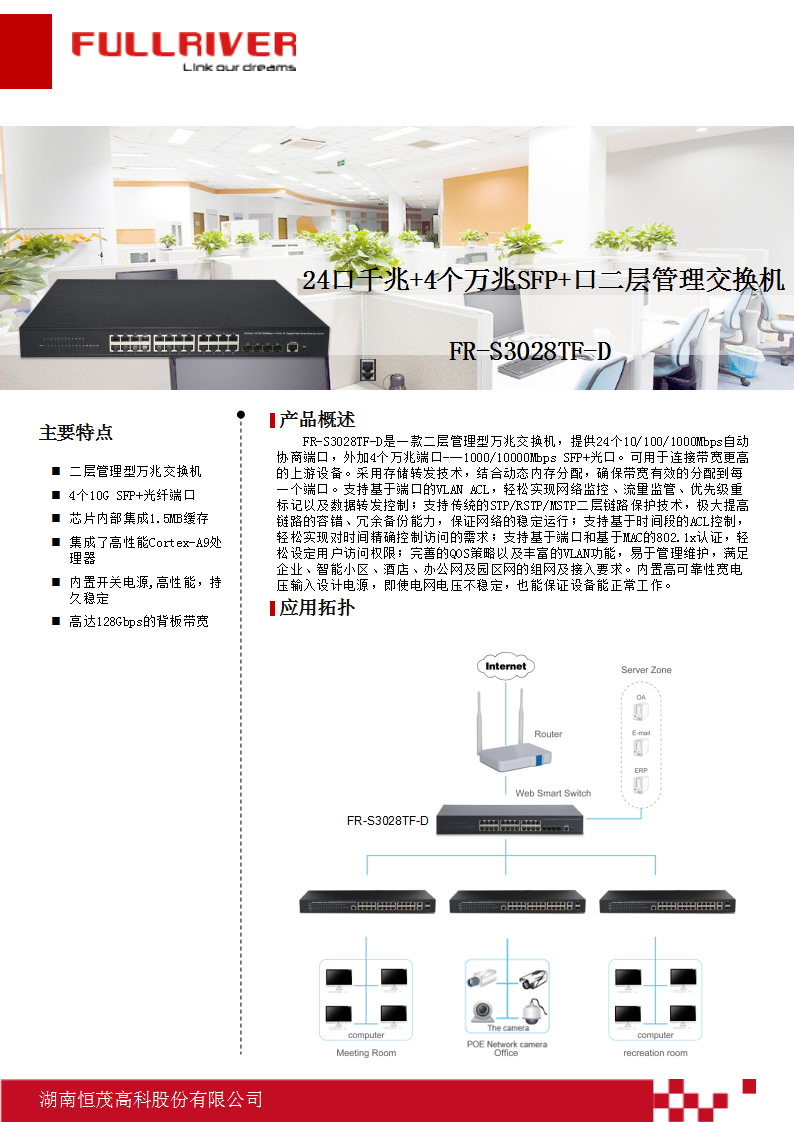 恒茂高科 FULLVER 24口千兆+4个万兆SFP+二层管理交换