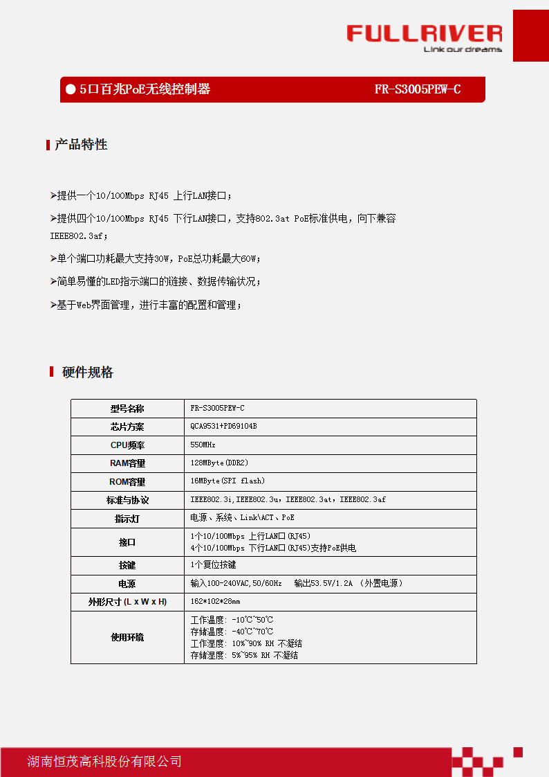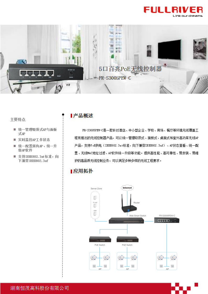 恒茂高科 FULLRIVER 5口百兆PoE无线控制器