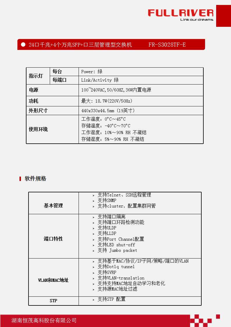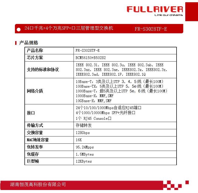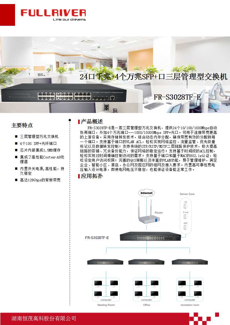 恒茂高科24口千兆+4个千万兆SFP+口三层管理型交换