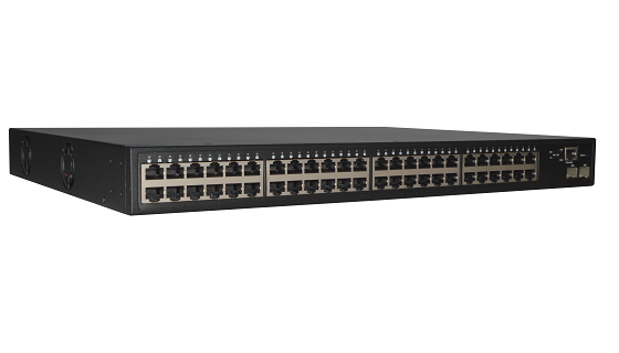 48个10/100/1000Mbps自适应RJ45端口 2个1000/10000Mbps SFP+光纤接口 1个 RJ45 Console口 |