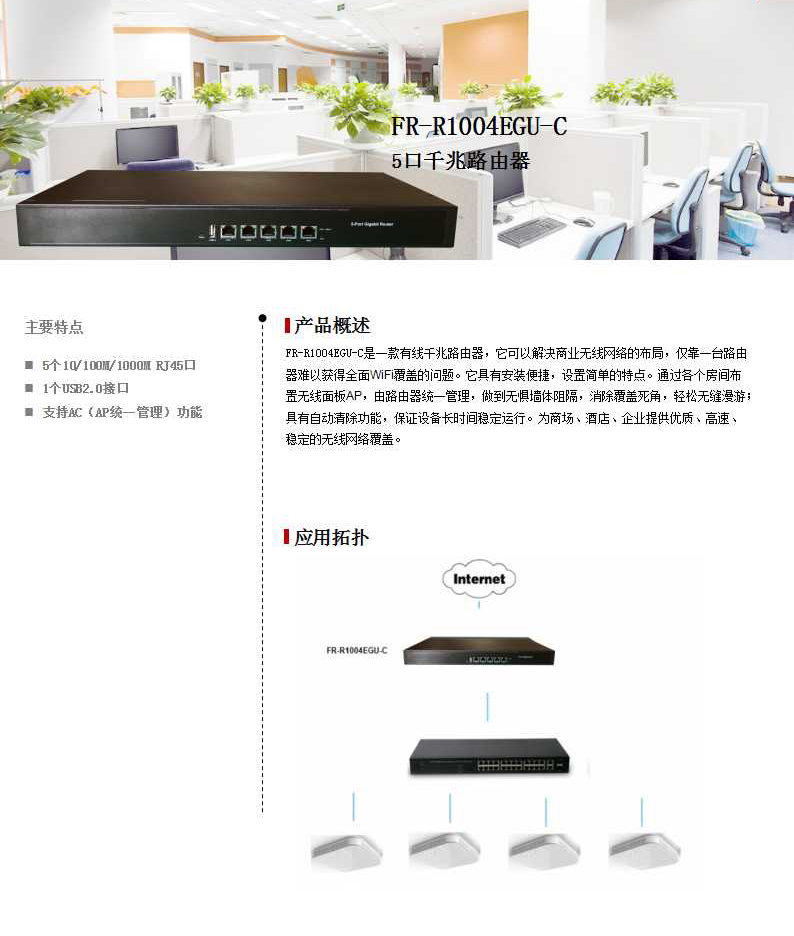 一个10/100/1000Mbps RJ45 WAN口 四个10/100/1000Mbps RJ45 LAN口 一个USB2.0接口