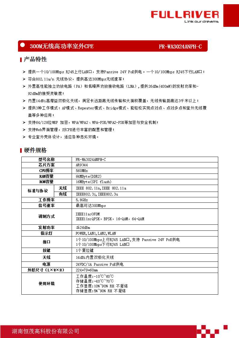 恒茂高科 FULLRIVER 300M无线高功率室外CPE