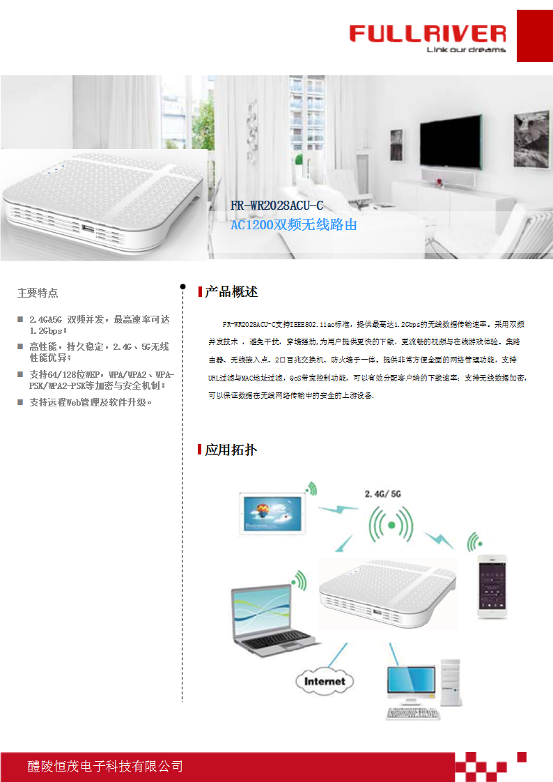 - 符合802.11ac/a/b/g/n 无线协议,提供高 达1.2Gbps无线速率;