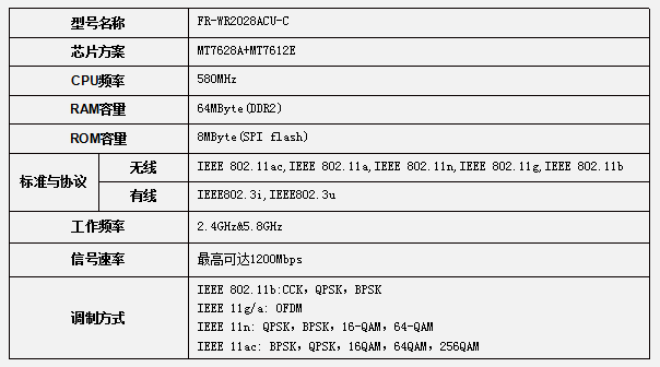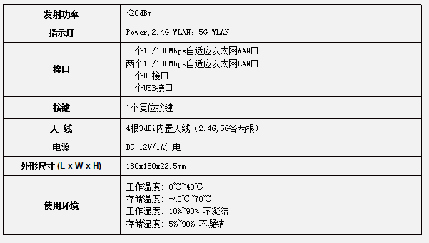 - 支持最高达1.2Gbps的无线传输速率,具备速率自适应功能,可以自动调整无线传输速率;