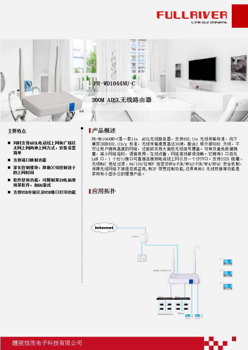 • 支持USB网络存储以及USB打印功能