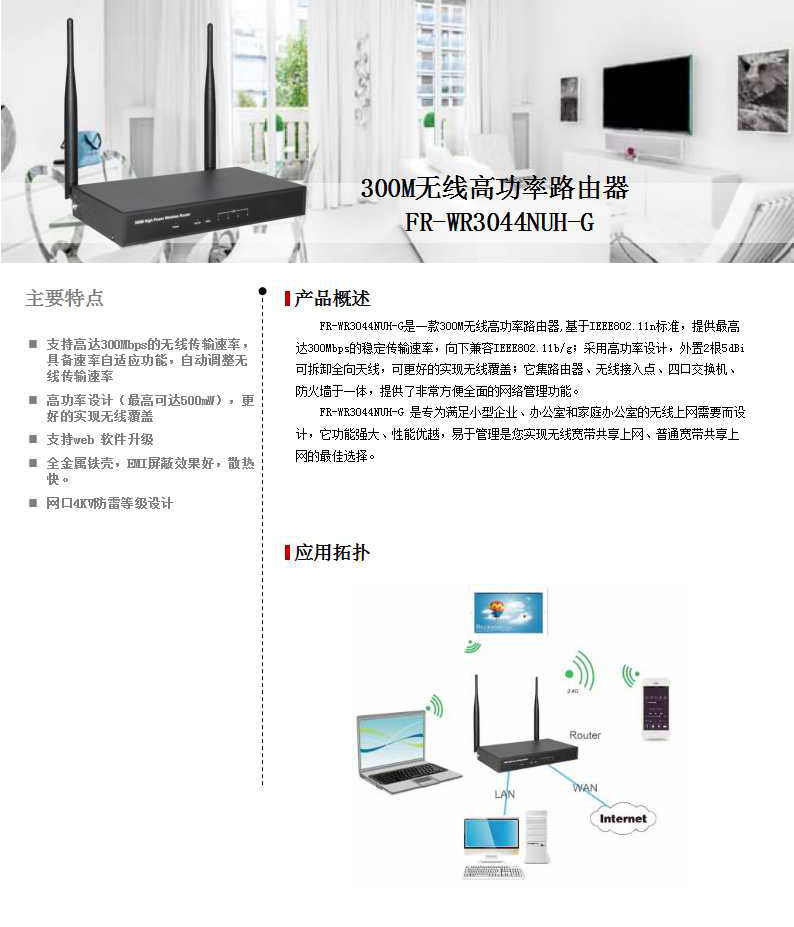 1个10/100Mbps WAN口(RJ45) 4个10/100Mbps LAN口(RJ45) 1个DC电源接口 1个2.0 USB接口