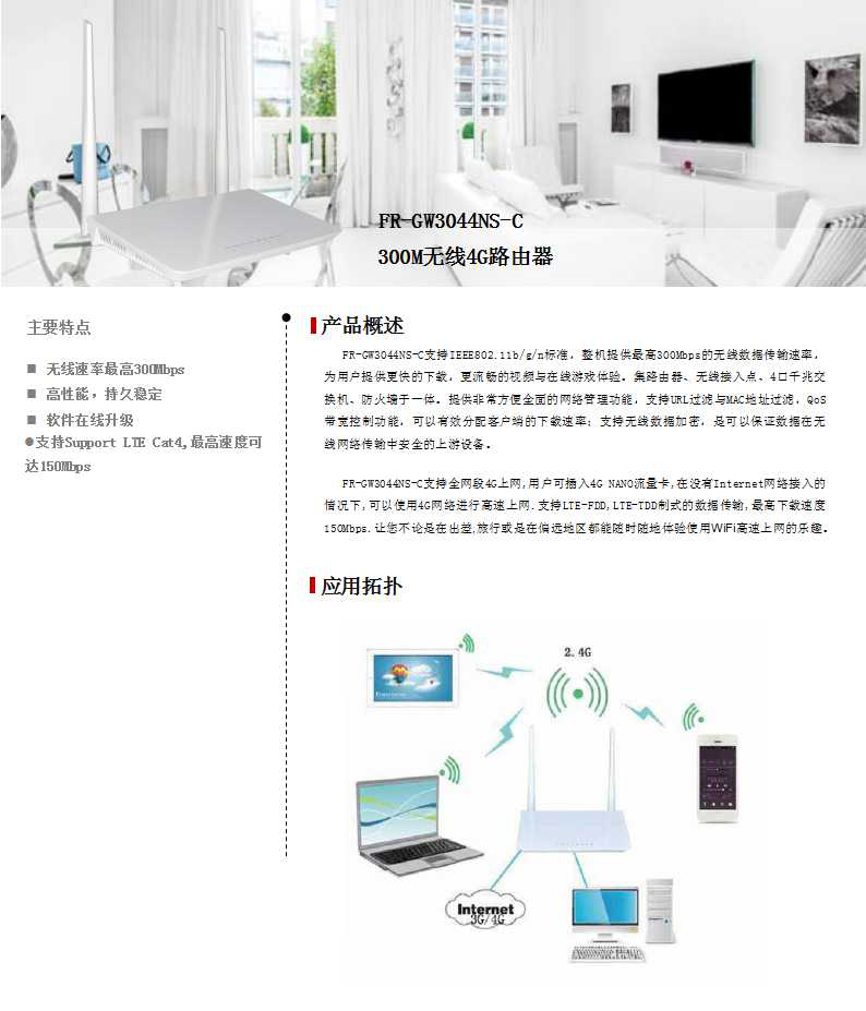 一个10/100Mbps自适应以太网WAN口 四个10/100Mbps自适应以太网LAN口 一个NANO SIM卡座接口 一个DC电源接口