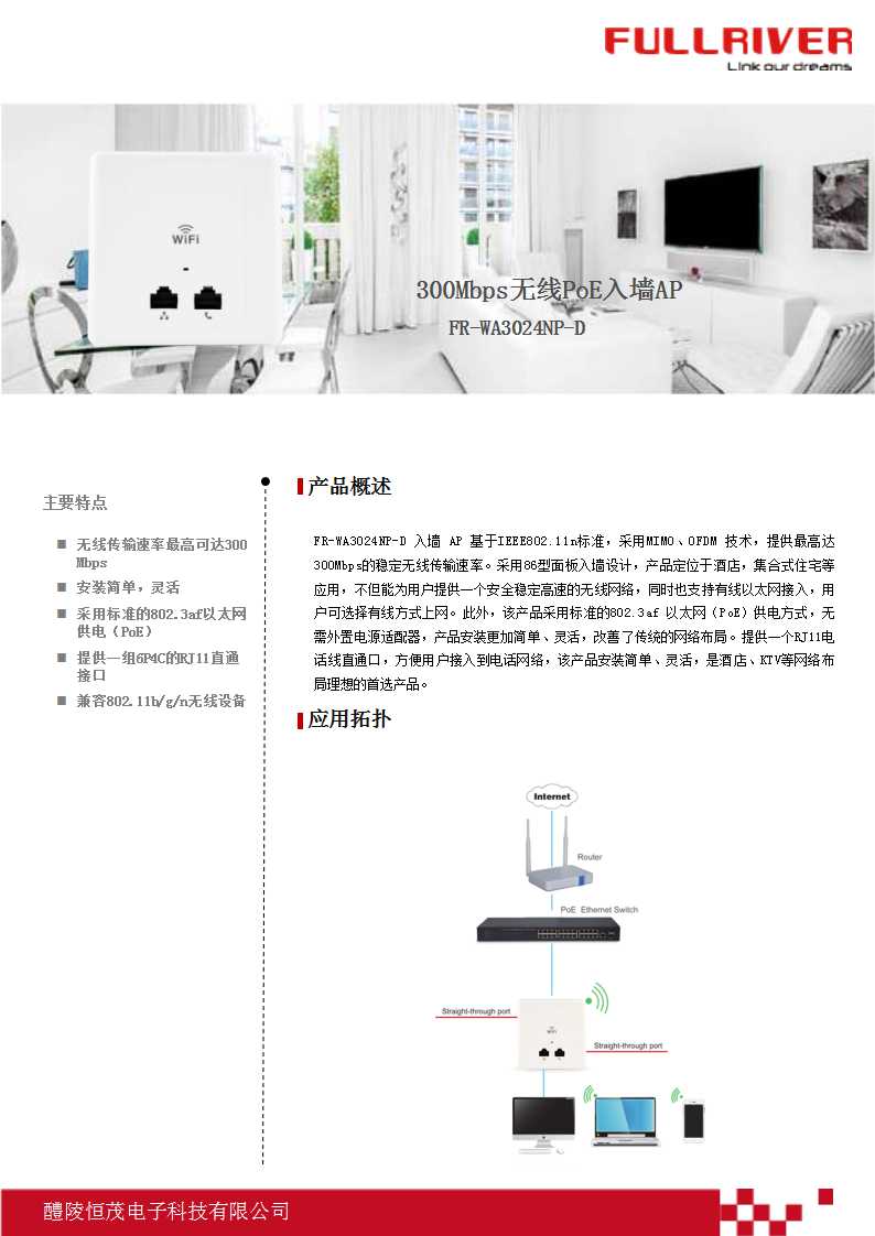 - 提供一个10/100Mbps RJ45 上行LAN接口,支持802.3af PoE标准供电;