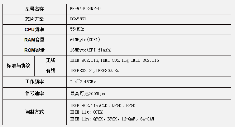 - 符合802.11b/g/n 无线协议,提供高达300Mbps无线速率;