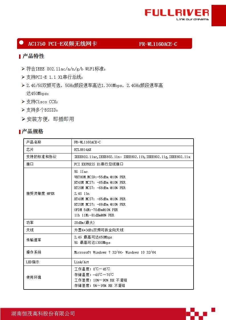 恒茂高科 FULLRIVER AC1750 PCI-E双频无线网卡